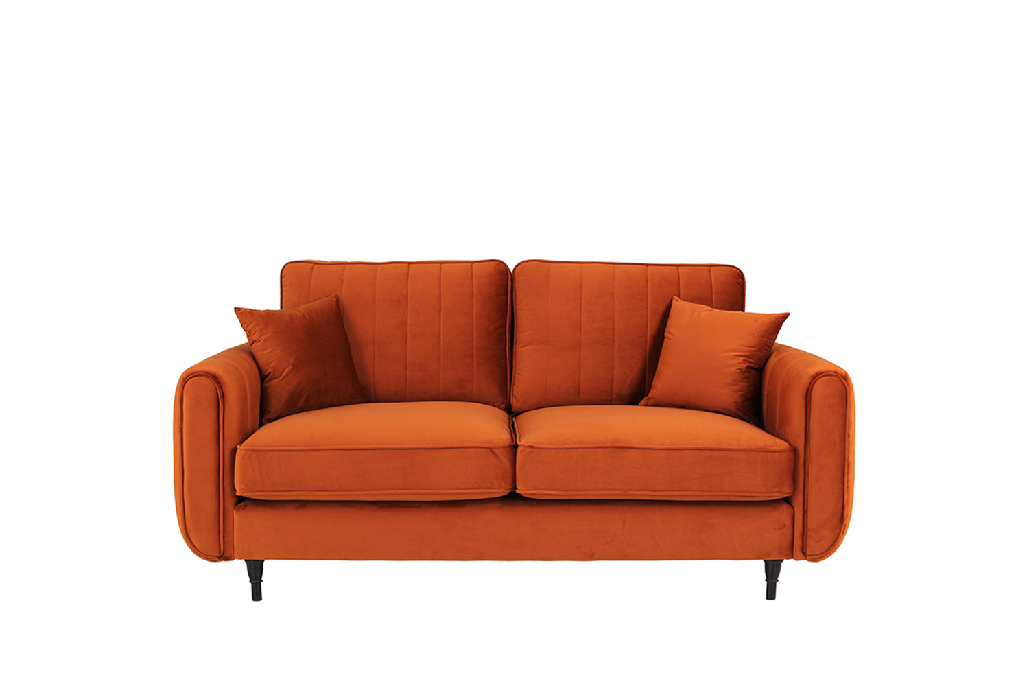 Upholstered in luxurious, soft orange velvet fabric, this sofa features a sleek design with clean lines and subtle vertical tufting on the backrest. The plush cushions provide exceptional comfort, while the sturdy frame and tapered legs offer reliable support and durability. Ideal for contemporary homes, this sofa effortlessly combines style and functionality, making it a must-have piece for your home décor. Transform your living room with this vibrant and inviting sofa.