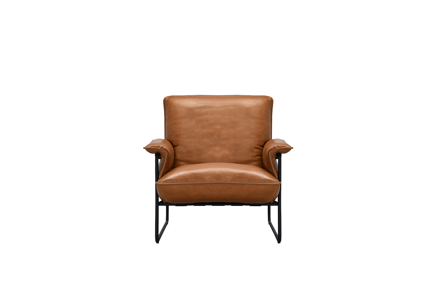 Our Niko chair blends contemporary comfort with industrial edge, making it a standout feature in any modern living space. Upholstered in supple leather, it features generously padded cushions and relaxed armrests that invite you to sink in and unwind. The deep seat and supportive backrest are designed for laid-back lounging, while the slender black metal frame adds a sleek contrast and urban flair. Its low profile and clean lines give it a minimalist presence, ideal for loft-style apartments or design-forward interiors. This chair offers both style and substance, perfect as a statement piece or a refined accent.