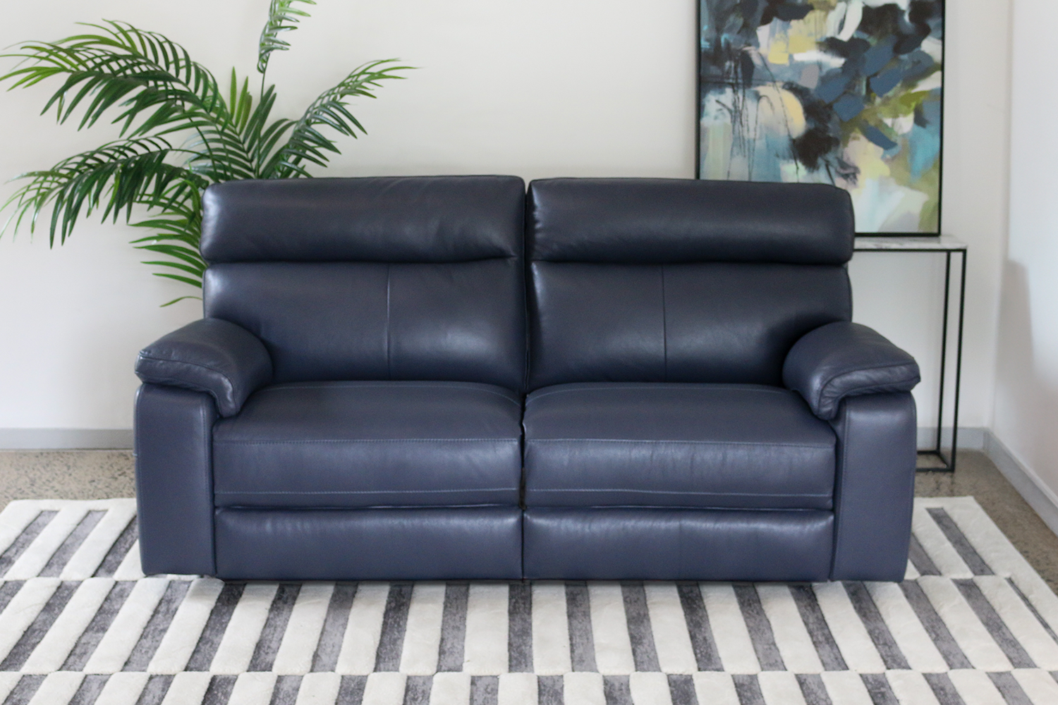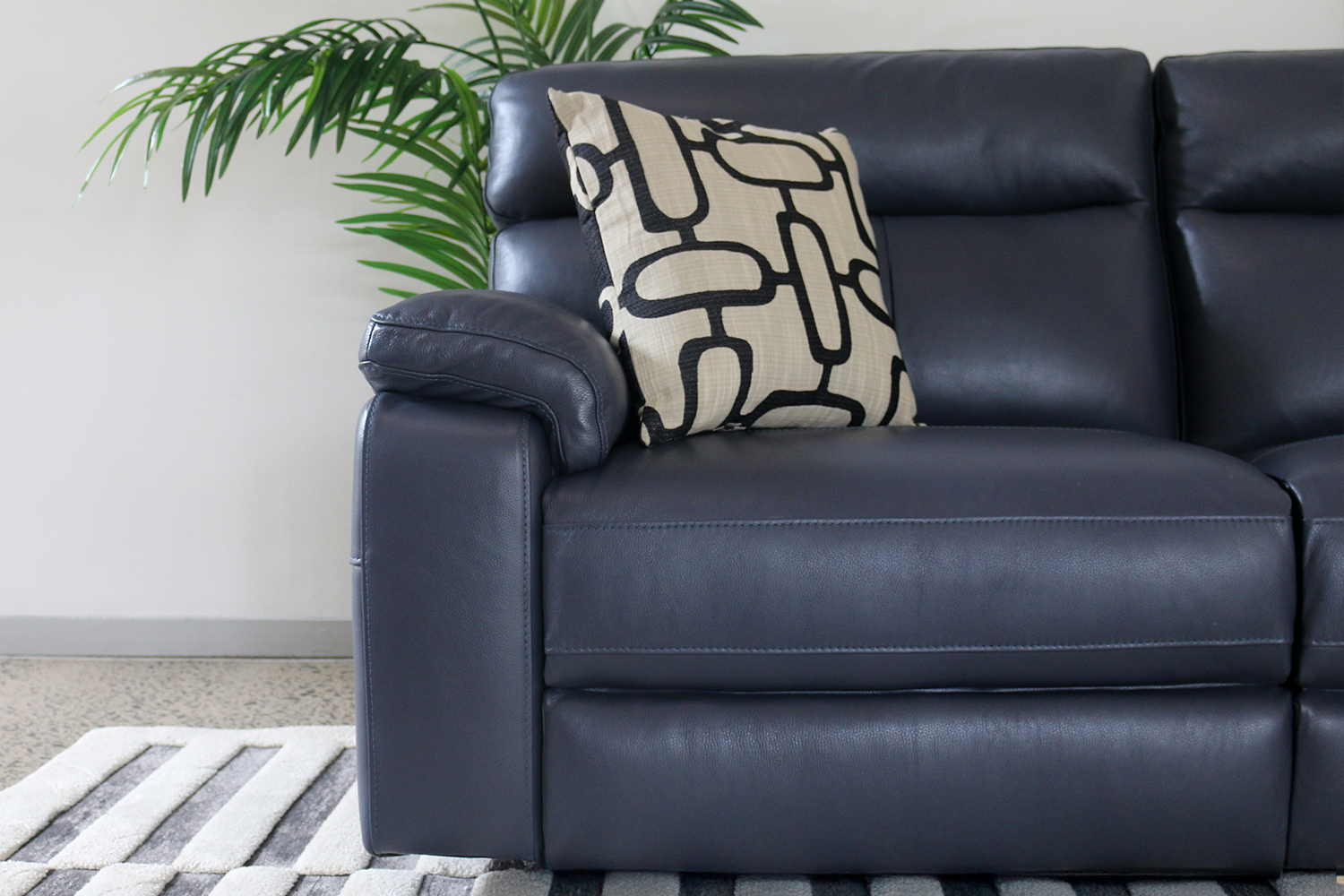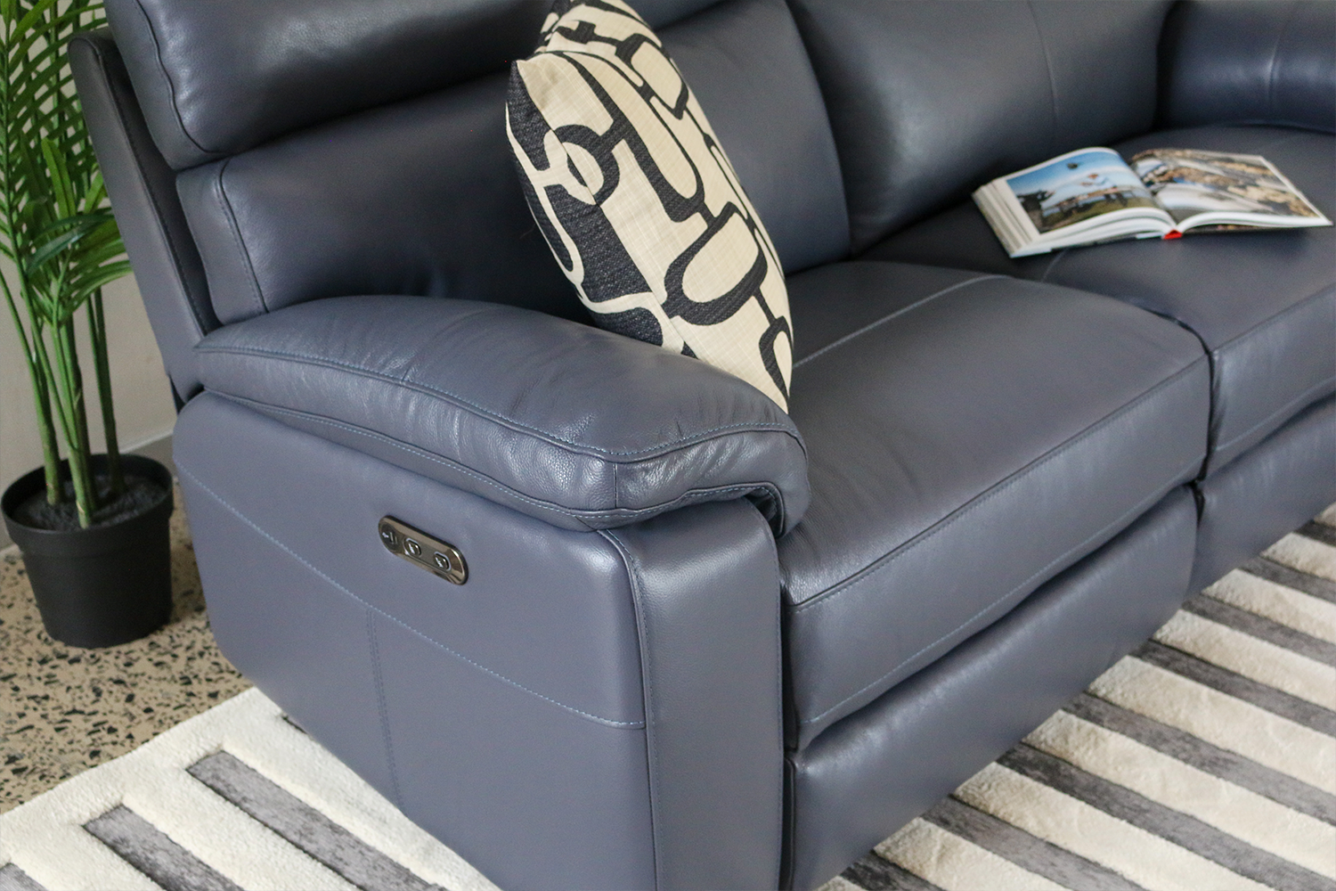 Our Palermo electric reclining collection is crafted from genuine leather, offering a luxurious feel and a sophisticated aesthetic. Its deep navy blue hue adds a bold yet refined touch to any living space, while the high backrest and plush cushioning provide exceptional comfort and support. The seating is generously padded with premium inserts, ensuring a cosy experience for extended lounging or reading sessions. With an electric reclining mechanism and USB charging port each side, users can effortlessly adjust their position at the touch of a button, making it easy to find the perfect angle for relaxation. The supple leather finish is not only visually striking but also easy to clean and maintain, ideal for everyday use. Sleek armrests and fine stitching further enhance its modern appeal, combining style with durability. Whether for a quiet night in or everyday comfort, the Palermo range delivers both functionality and luxury in a timeless design.