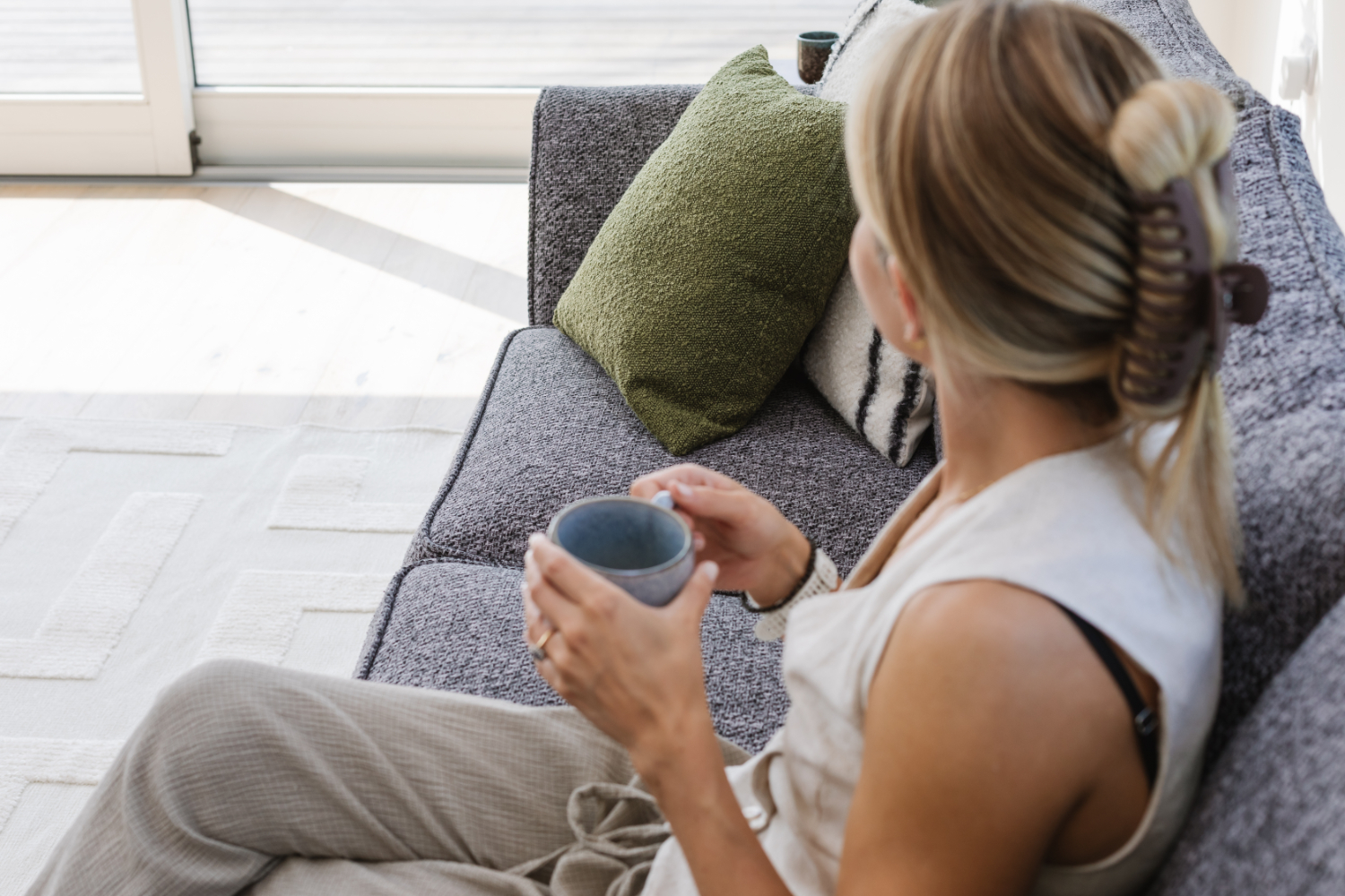 Holding the cushion in both hands, firmly pat the outside edges of the cushion to allow air to circulate back into the filling. For scatter cushions, take the cushion in both hands and rotate as you plump the sides to bring the filling back into the centre. Lightly pull at the corners to neaten and then arrange them as desired. Don’t forget to plump up your arm cushions if they are removable.